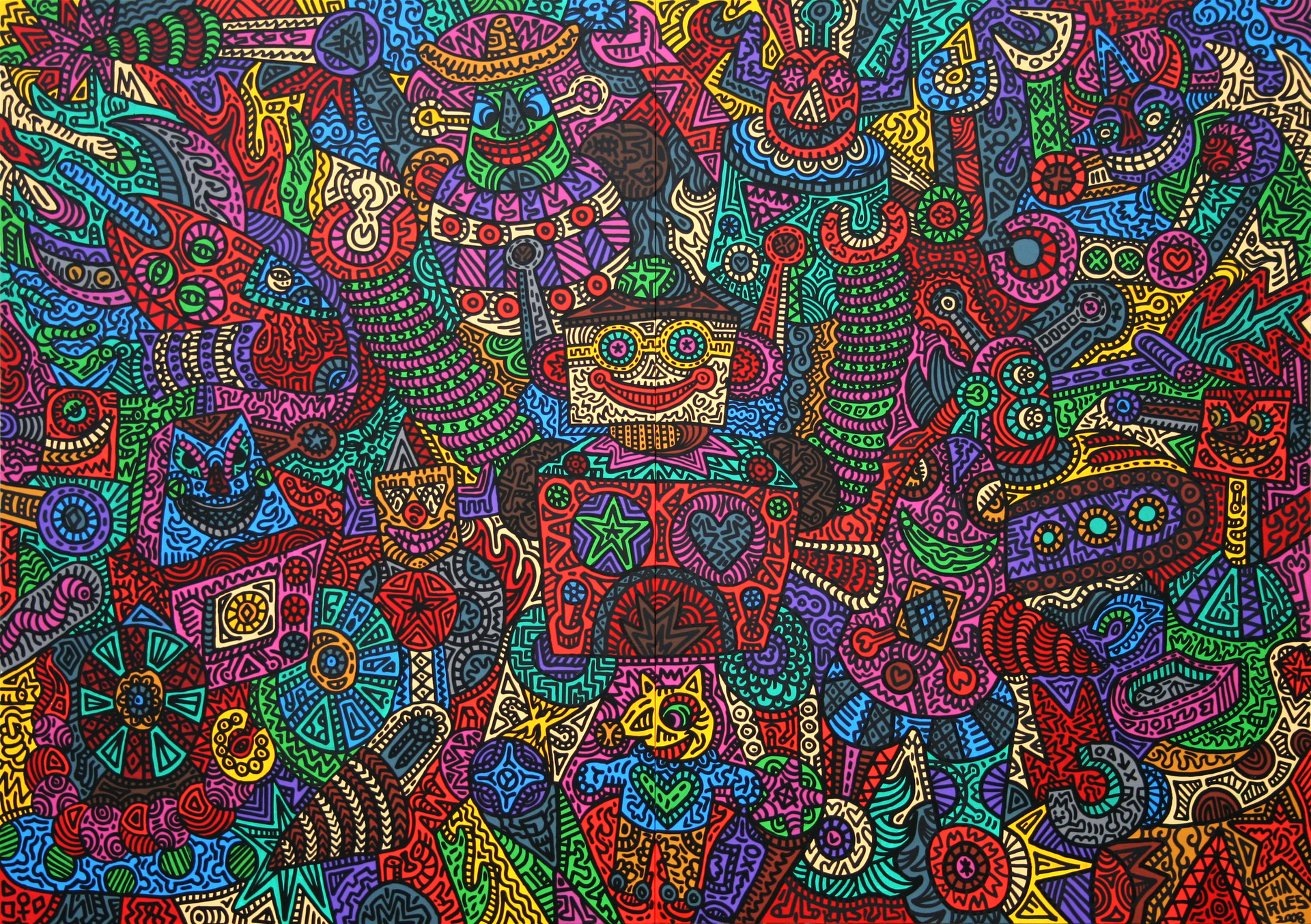 2008_0073_HappyRobots_250x350cm_Acrylic on Canvas